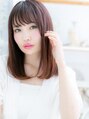 斜めバングミルクティーピンク内巻きセミディc6越谷20代30代40代