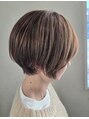 シンプルコンパクトショートボブのアッシュ系白髪染め。白髪染めは低アルカリ使用。地肌が染みやすい方、エイジング毛向けの白髪染めです。
