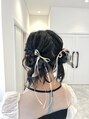 【お呼ばれセット、ツインお団子】ツインお団子でキュートなお呼ばれスタイルに!ブラックとホワイトのリボンを2本つけておしゃれに。