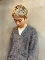 前髪を上げても下ろしてもスタイリングしやすいメンズショート☆カラーはブリーチ2回~可能なブロンドにすることでより立体感が出てくれます。メンズスタイルはシルエットとスタイリングの簡単さ、小顔見えを大事にしています。