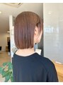 肩についてもギリギリはねない、長めのボブスタイルです!流行に囚われずシンプルでナチュラルな雰囲気がいいですね!カラーはベージュ系で明るく、白髪も染めてます!