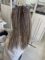 シークレットハイライトで透明感カラーに仕上げました♪何度か繰り返し入れたシークレットハイライトが毛先にかけて明るくなっている状態にグレージュをオンカラーしました(*^^*)