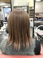 人気のチョコレートベージュです。一度、ブリーチします。仕上がりに艶が欲しいので少し赤味のあるチョコレートベージュ系を塗布。髪に艶がでるのでとても髪が綺麗に見えるのでお薦めです、是非、お試し下さい。
