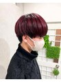メンズマッシュカット、ダブルカラーワインレッド、ボルドー、ローズレッド、バーガンディー、など赤髪RED、レッドカラー色々できます。ブリーチ無し、ブリーチあり真っ赤やファイヤーレッドやデザインカラー、ハイライトレッド、レッドメッシュ、ツートンOK