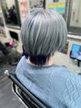 髪型はショートクラゲウルフに整え、もともと髪の毛が明るい方でしたので、根本ブリーチリタッチをしたのちに、襟足ネイビー、上をシルバーに仕上げました。
