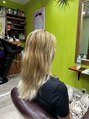 ブリーチによる負担を受けた髪をスペシャルTRでケアしました。ブリーチを重ねると内部のタンパク質や脂質が大量に失われ水分量も低下します。そこで今回はケラチン・コラーゲン・脂質・キトサンなどを髪内部な大量に補給して美しい状態にしました。