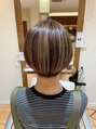 マッシュベースで丸みを出し、襟足は刈り上げてスッキリとさせました。前髪はワイドバングでかわいく仕上げています。カラーは白髪ぼかしのハイライトです。