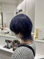 ウルフに顔周りにレイヤーを入れて顔を小さく見えます!!色はラベンダーも入っているので色落ち緑にならないネイビーカラー!