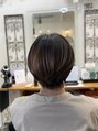 くびれのあるショートスタイルになります。襟足の長さを少し長めにする事でトップの高さを際立つようにしています^^