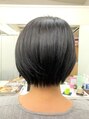 少しレイヤーの入ったボブです。毛先を軽くして丸みのあるスタイルに。流さないトリートメントをつけて乾かすだけで仕上げました。