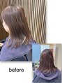 可愛く伸ばしていけるように。ワンカール外ハネに。グレージュで大人さをプラス。