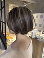 【お気に入りのスタイルはブックマークして提示ください】[調布/顎ラインボブ/レディース大人ショートヘア/ミルクティーカラー/耳掛けショートボブ/暖色系カラー/ハイライト/白髪染め/レイヤーボブ/ミディアムレイヤー/白髪ぼかし