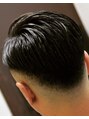ハードパートで流したバーバースタイル。周りはスキンフェードにしながらも低めに設定することでより大人っぽさを演出。