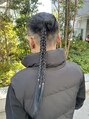 刈り上げにロングヘアは多毛剛毛さんにオススメ。カラーは裾にブルーを入れてアレンジは可愛くちょっとアンバランスなところが癖があっていいポイントです^^