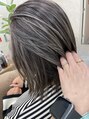 コントラストをしっかり付けたコントラストハイライトカラー。全体的にはグレーの色味をしっかりいれたカラーになります。ハイライト以外のところは暗髪になっているので根本が伸びてきても気になりずらいカラーリングです!