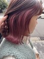 切りっぱなしのカットに、インナーを広めにケアブリーチでブリーチしてから、濃いめのピンクバイオレットをオン◯外ハネにして、オイルをサラッとつけるだけでOKなスタイルです!