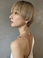 ブラントカットでラインがしっかり出るマッシュショート。前髪を長めに設定する事で大人っぽい印象に仕上げました。カラーはブロンドベージュでトーンアップ♪