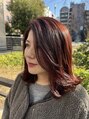 切りっぱなしにカットしたベースに、顔周りだけ少し短くレイヤーを入れたスタイル◯カラーは赤みが強めのボルドーで、色落ちが黄色くならないように!外ハネにして、オイルをサラッとつけるだけでいい簡単なスタイルです!