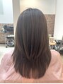 セミロング顔周りレイヤーストレート。リップラインからレイヤーを入れ、軽い質感に。サイエンスアクアを重ね、ツヤとまとまりのある柔らかい仕上がりに。