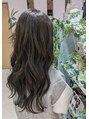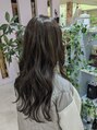 腰近いロングスタイルを重く見せずに軽やかに仕上げています。先にカット+エアーウェーブ+しっかりトリートメントを施術してあります。後日にブリーチでハイライトを入れ、新色アイスモスのグリーンで爽やかな色合いに。立体感のある大人のロングスタイル。