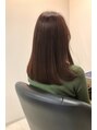 細くダメージを感じ易い髪質です。髪質改善トリートメントのハリコシ×しっとりを使い分け、日々のお手入れを楽に仕上げてあります。エイジングの癖も少し緩和され艶と纏まりを感じる事が出来ます。白髪ぼかしのイルミナで重たくならずに軽やかロングスタイル