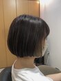 全体にブリーチハイライトで明度・彩度の差をつけるための土台づくりをし、耳上はインナーカラーを入れる為に広範囲のブリーチ仕込みを。全体に赤味を抑えたバイオレットのアンニュイな色味とインナーの赤味を抑えた透明感グレージュの濃淡コントラストカラー