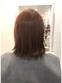フラットな切りっぱなしもそれぞれの顔の形や首の長さ・肩回り(ストレート・ウエーブ・ナチュラル)によって映える位置が違ってきます。与えたい印象でも異なっていて重要です。ガラッと印象を変える為に弱めのブリーチで一度、ベースをぬいてONイルミナカラー