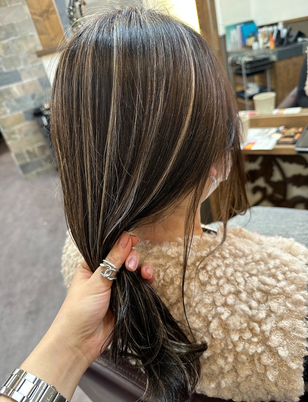 コントラストのあるハイライトで筋感と透明感up。大人ぽくなります。