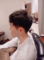 メンズの癖毛を生かしたショートスタイル。サイドはツーブロック、襟足はグラデーションジェルワックスでお仕上げです。
