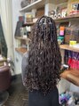 ウエーブのエクステをブレイズ部分にミックスさせて仕上げるボヘミアンブレイズ