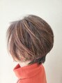 グラデーションボブ。頭の形を良く見せるように後頭部は丸く、襟足はスッキリと。白髪ぼかしハイライトとヘアマニキュアの組み合わせ。束感を出しながらザックリとしたショートスタイル。