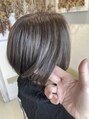 前下がりのボブにカットし、トップがふんわりする様にレイヤーを入れますカラーはハイライト後にグレイ系でカラーリングします