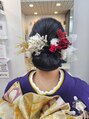 ダウンシニヨン新日本髪風です。シンプルなデザインなのでラインになりやすいスタイルを若々しいイメージのラインで作りました。