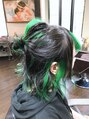 【気に入ったスタイルはブックマークをしていただくと便利です】気になることはお電話等でもご相談受け付けておりますので、お気軽にご連絡ください デザインカラー 緑カラー 派手髪 グリーンヘア