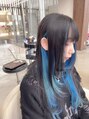 上は地毛でインナーカラーで2度ブリーチして水色っぽい青を入れてます!実はこの方縮毛矯正もされているのでダメージには極力気をつけてブリーチしています顔周りからしっかりレイヤーを耳後ろまで入れていてインナーカラーも映えるデザインにしています!