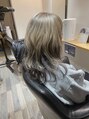 内側ではなく表面をブリーチする逆インナーカラー。ホワイトアッシュ系。表面が際立つように内側には暗めのカラーを入れてあります。ブリーチを使ったメニューはお電話での予約になるのでよろしくお願いします。」