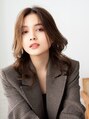 センターパート大人ウェーブハッシュカット×ショコラアッシュ/ホットペッパービューティー