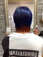 メンズウルフカット/ツートンカラー/インディゴ/オレンジレッド/ホットペッパービューティー