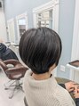 大人ショート人気No.1のスタイルです♪どの角度から見てもきれいなひし形ショート◎首元をスッキリさせたい方、トップに膨らみがほしい方にオススメです(^^)顔周りレイヤーで小顔効果もあります!ダメージの少ない白髪染めで柔らかさアップです