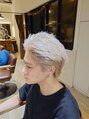 短すぎないゆるめツーブロックのナチュラルソフモヒにブリーチ2回で作るホワイトベージュでラフでシャープな印象に。日吉/慶應