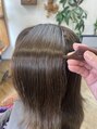高濃度のトリートメントを mixしてふんだんに入れます。艶々な仕上がりに大満足間違いなし!保湿力が高くクセが落ち着きサラサラも持続!毎回このトリートメントを混ぜて染めていたら、髪質改善にもなります。是非一度試してみませんか?