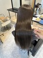 ロングヘアは表面に艶感があるととても綺麗♪ 枝毛カットと表面に短い毛が出ないように質感を調整!髪質改善でウルツヤ髪に◎ お色はグレージュで重たくなり過ぎず柔らかさを出せます♪