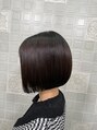 焦茶色のミニボブ。コンパクトなヘアスタイルで、小顔効果が期待できる。