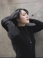 大人女子の黒髪スタイル。冬の黒×黒でも乗っかるように重く見えない、程よい長さのシースルーバングに、髪色はブルーたっぷりのグレーで透明感と強さを与えて凛としてかわいい感じに。