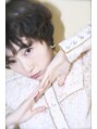 毛流に馴染ませたフォワードな動き。バングスはかなり重く全体の方向性としてはラウンドマッシュとショートレイヤーの中間の感じで前髪にほんの少しの隙間とニュアンスを。そして襟足を締めたデザインはバランス良く奥行きのあるシルエットになります。