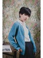 毛流に馴染ませたフォワードな動き。バングスはかなり重く全体の方向性としてはラウンドマッシュとショートレイヤーの中間の感じで前髪にほんの少しの隙間とニュアンスを。そして襟足を締めたデザインはバランス良く奥行きのあるシルエットになります。