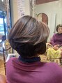 ハイライトを入れた白髪ぼかしトリートメント配合カラーでツヤツヤにトップにボリューム感を