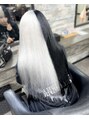 ブリーチをしてホワイトとブラックのツートンに♪エクステはスーパー人毛エクステ60枚で長さだしエクステごと染めているので色落ちも揃ってくれます◎