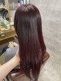縮毛矯正履歴のある、ブリーチなしでできるカシスレッドです。赤系はブリーチなしでも高発色にできちゃいます。