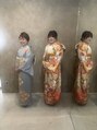 今日がお顔合わせのお客様♪帯は格式あるふくら雀。帯揚げはシンプルに本結び。帯締めは存在感のある藤結び。お着物はとても華やかな柄行ですがお顔合わせでしたのでアレンジの類ではなく、昔から受け継がれている基本の物で仕上げさせて頂きました。